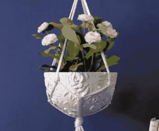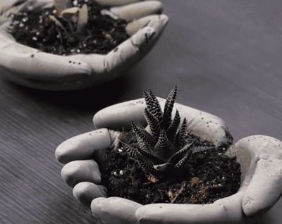 在空气中干燥后,拿起混凝土毛巾,把它弄直,放入土壤和植物中。一株艺术盆栽植物将会准备好。