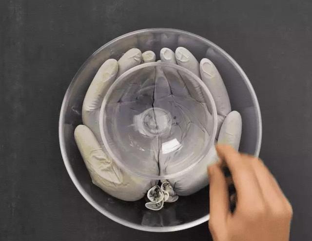 水泥凝固后,取下胶带、脸盆和其他辅助产品。