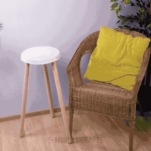 制作的小茶几放在扶手椅旁边,平时看书时用来放咖啡或植物。它既漂亮又实用。