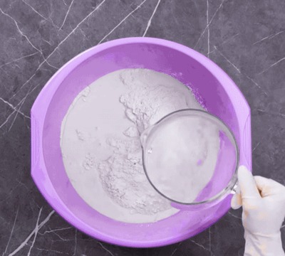 首先,在脸盆里搅拌水泥,然后摇动使其变平。