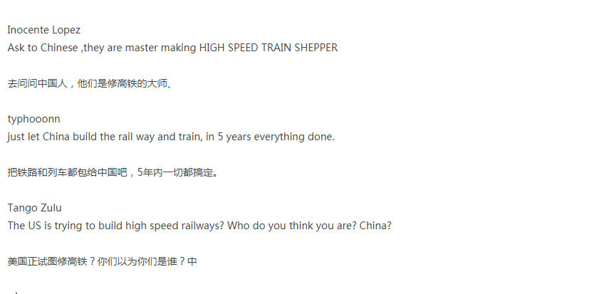 然而,到目前为止,美国人口激增,城市交通出现了各种问题。此时,美国发现公路和航空空两条道路已经走到尽头。这时,他们想起要继续发展高速铁路。然而,社会模式已经形成。这个城市的发展已经饱和,没有发展高速铁路的空间。此外,美国多年来没有任何发展铁路运输的意图。现在这个领域的技术已经落后了。因此,美国不知所措。因此,一些美国网民评论道:问问中国人,他们是高速铁路建设的大师。