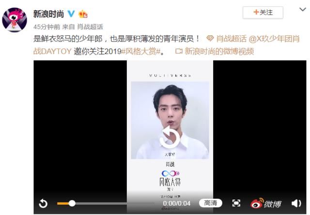 今天,新浪时尚发布了一段关于小展的视频,小展是一个穿着新鲜衣服、骑着愤怒的马的年轻演员,也是一个皮肤厚头发薄的年轻演员。小站邀请你关注2019年新浪时尚的风格。白衬衫清爽、明亮、帅气、迷人。和赞赞一起注意它!
