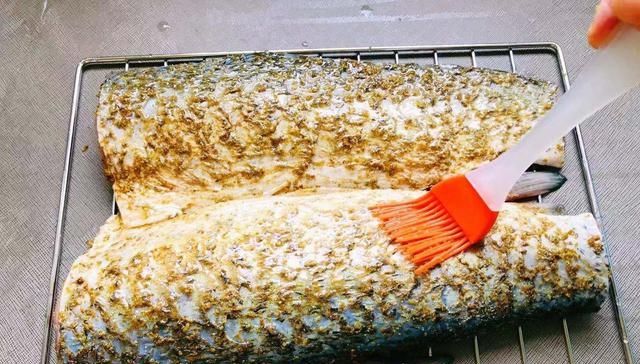 打开烤箱,在200度预热5分钟。腌完鱼后,在鱼的两面刷一层食用油,放在烤盘上。打开烤箱,在热烤箱中烘烤15分钟。