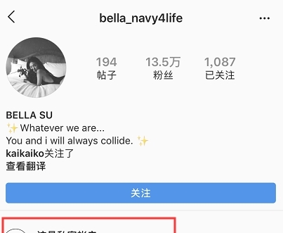 然而,由于贝拉在高以翔死后的关注度太高,她现在把账户设为私人账户。除了以前看过的人,现在看过的人什么都看不见。而且,她已经删除了许多以前的帖子,只是不想被高度关注。