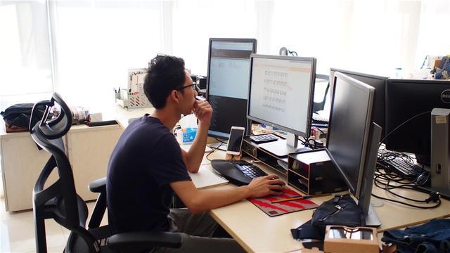 图为深圳进化动力数字技术有限公司研发团队正在讨论人工智能的技术问题。