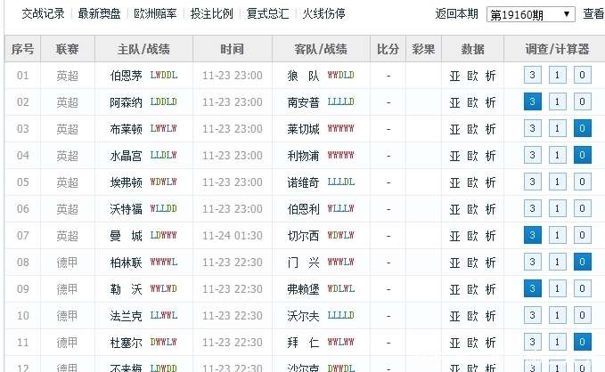 本赛季的足球比赛包括英超七场,德甲六场,意甲一场。比赛时间相当集中在11月23日至11月24日1: 30。