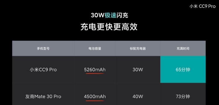 近日,小米CC9产品经理@洪辰_劳伟在微博上推广了小米CC9 Pro的30W闪光灯充电技术。她说:“这是小米第一次采用全新的充电架构。虽然功率似乎很小,但它能在65分钟内充满5260毫安的大电池!甚至超过40W友好型手机,电池容量为4500毫安。”