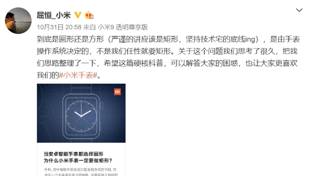 近日,小米生态连锁总经理曲衡通过微博向大家解释了小米智能手表采用矩形设计的原因。