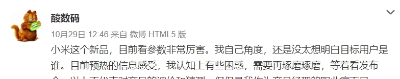 小米CC9专业用户的目标群体也不为朋友所理解。一位产品经理表示:“小米是一款新产品,目前拥有非常好的参数。从我自己的角度来看,我仍然不太想知道目标用户是谁。目前,我对热身信息感觉有点困惑。我需要再考虑一下,等待新闻发布会。”