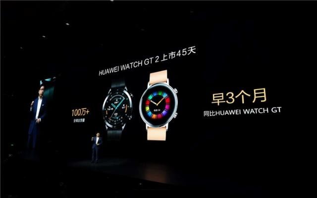 俞成东表示,华为手表GT 2上市后45天内全球销量超过100万台,比华为手表GT早3个月。