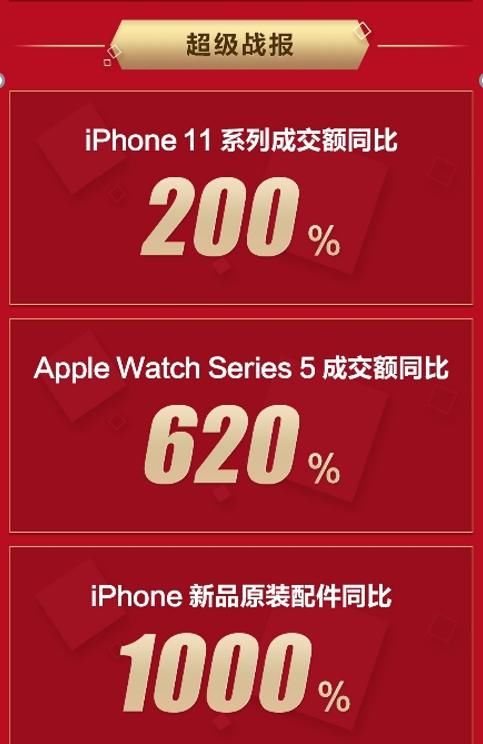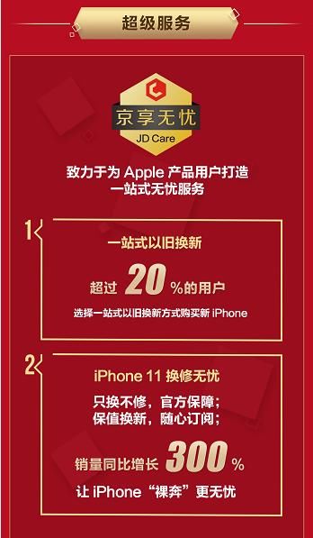 JD.com平台上的苹果护理升级版很受消费者欢迎。新产品发布期间,供维修的iPhone 11销量同比增长300%。