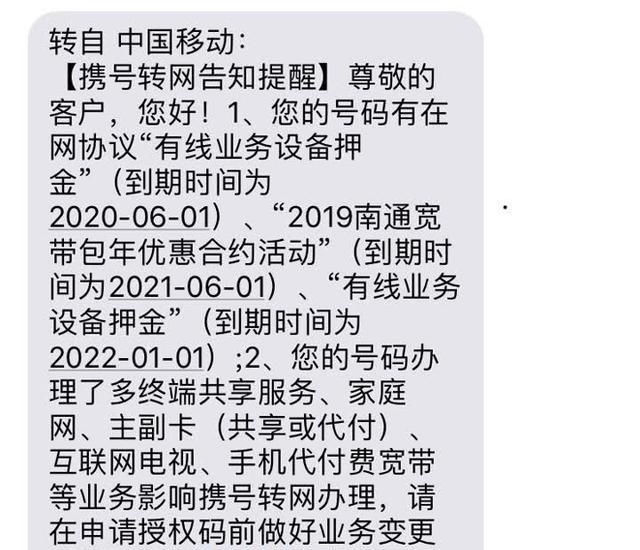 陈先生是一名公民,是一名移动用户。得知他可以把自己的号码转到网上后,他发了一条短信询问他的资格。结果显示,由于几个原因,他“暂时无法将他的号码转移到互联网上”。具体原因是数字包括互联网协议中的“有线服务设备押金”、2019南通宽带套餐年优惠签约活动、多终端共享服务等。申请授权码之前,必须完成业务变更程序。后来,他拨打了10086,得知如果用户在互联网上签署了一个时间限制协议,他暂时无法将该号码转移到互联网上。如果你想处理这个案件,你必须首先取消携带号码的限制,然后根据协议将号码转移到网络。但是,这是单方面取消,用户需要承担相应的违约责任,并到指定的营业厅办理。了解到这种情况后,陈先生放弃携带号码来交换网络。携号转网办理网点