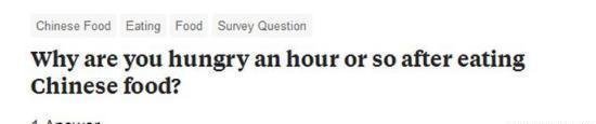 然而,最近发生了一件非常有趣的事情。外国网友在qoura网站上问:为什么你吃了一个小时的中餐后会饿?看到这个问题,许多外国人参与了回答。//