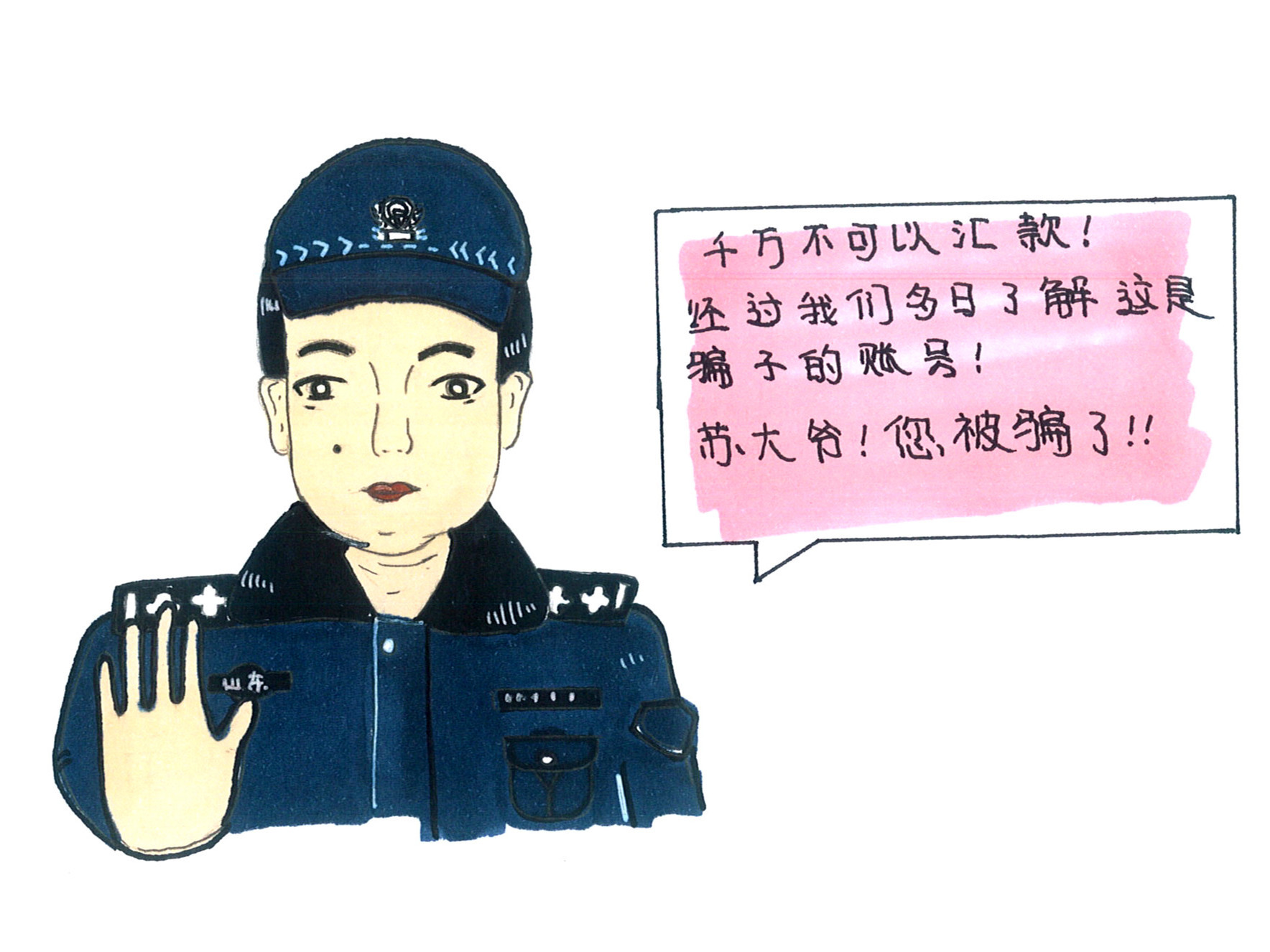 王晓庆:我们警察局离德州大学很近,附近有很多老人。我们经常接触到被电信欺骗的学生和被欺骗的老人。我们做公安工作,宣传和反欺诈是我们的日常任务之一,与电视剧《万事俱备》的火相呼应。办公室里的同事们一跟我总结,最好借此机会用“苏大强”形象和漫画的形式展示如何防止老年人被保健品欺骗。更严肃的反欺诈知识,用文字写出来,我们往往没有多大兴趣,但以漫画的形式画出来,吸引力更大,我们愿意看到。