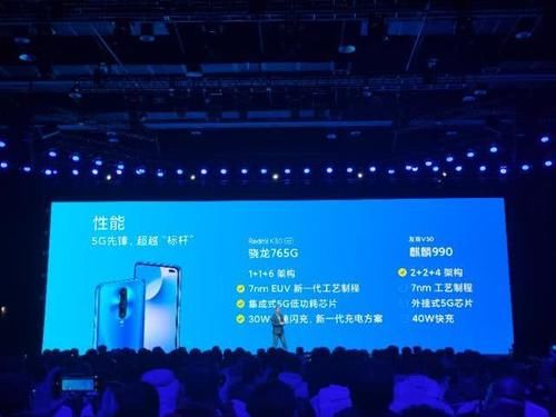 不仅如此,魏兵在新闻发布会结束时接受媒体采访时说,红米只有一个对手,那就是荣耀!同时,它还声称红米K30的目标是击败5G技术。显然,这也是针对荣誉V30,谁声称是一个基准。在这次小米会议上,魏兵还在很多场合制作了红米K30直接标记V30,如性能对比、屏幕对比、照片对比等各个方面。首先,卢魏兵承认,红米K30在性能上不如荣耀V30,但他觉得这两款手机的性能差距并不是特别大,因为小龙765G采用了7纳米EUV技术,是一款集成5G。麒麟990使用7nm,一个5G基带外部连接,并且消耗更多的功率。不仅如此,魏兵还声称,尚友称非集成处理器为“外部基带”,并表示,轮到他使用非集成处理器时,这是“双芯片”,这有点形而上学。