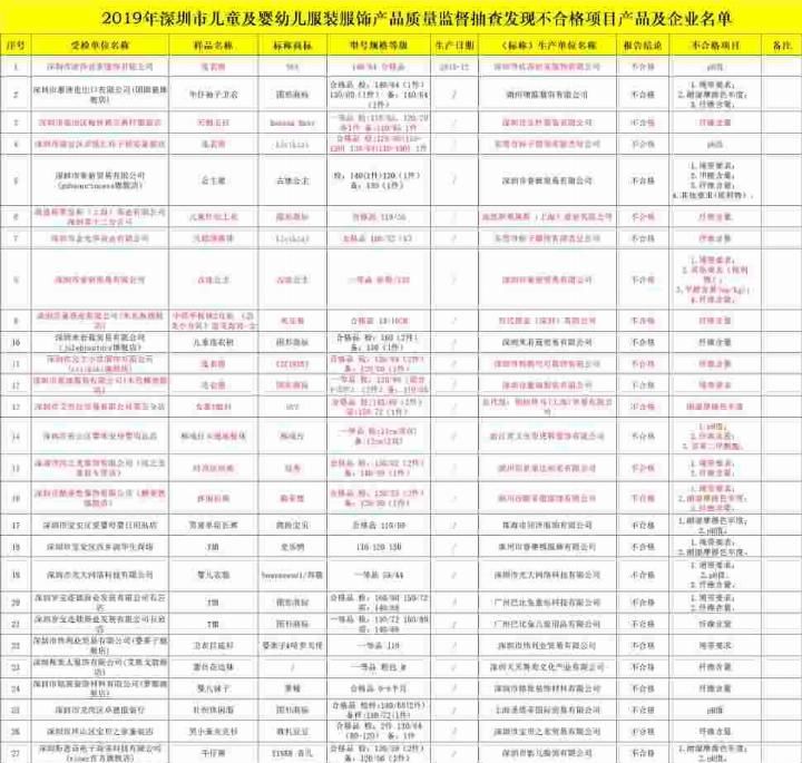 值得注意的是,总共有11批不合格样品绳要求该项目不能通过随机检查。具体包括:深圳君美服装有限公司生产的140/59时装裤、名义湖州织里荣达服装有限公司生产的140/56时装裤、深圳紫瑞服装有限公司生产的110/56服装、名义深圳宇鑫贸易有限公司生产的城堡公主等11批不合格样品