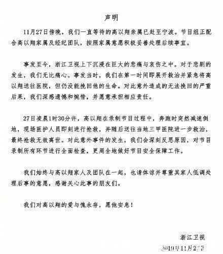 从节目的晚上到早上结束,再加上节目过程的高强度,许多客人都感到身体不适。毕文俊、范成成等人呕吐了,甚至有些艺术家需要救护车抬上去吸氧。困难的程序链接和动作设计引起了网民的质疑。浙江卫视也在晚间发表了一份单独的声明,表明了自己的态度,并决定深入反思与后续事宜的合作。高以翔追我吧最后画面曝光