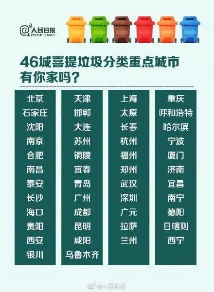 15日,住房和城乡建设部发布了《生活垃圾分类标志》标准,该标准将于12月1日正式实施。截至目前,中国已有237个地级及以上城市开始垃圾分类,46个垃圾分类重点城市名单如下: