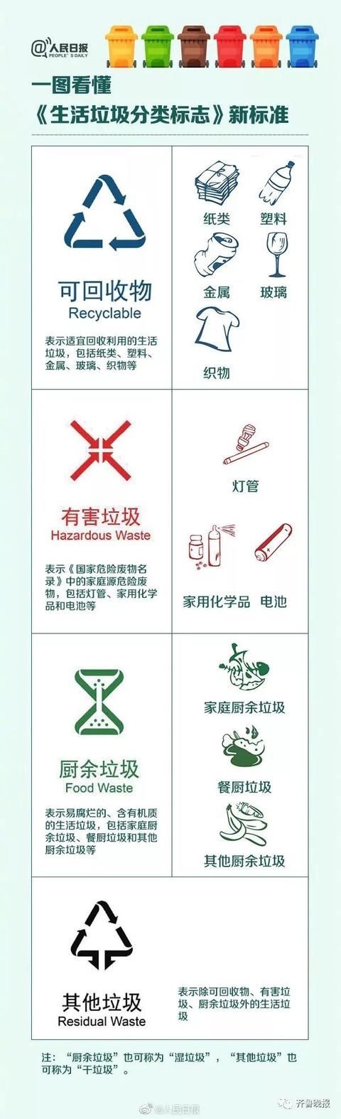 面对“生活垃圾分类标志”的新标准,人们应该如何知道自己扔的是什么样的垃圾?