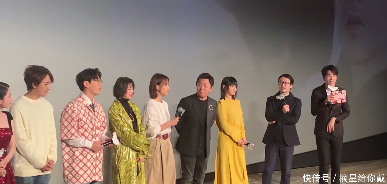 几个主角正站在舞台上接受采访,突然一个穿黑色衣服的男人走上舞台,径直走向王罗丹。他还拉着王罗丹的手。王罗丹说话时微笑着拿着麦克风,但突然他的整张脸僵住了。