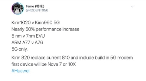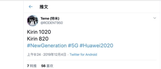 麒麟1020将升级到A77,采用TSMC 5纳米技术。据悉,麒麟1020已经成功拍摄,并将于明年第一季度量产,同时其性能将提高近50%。采用A77架构后,麒麟990 5G性能不如小龙855 plus应该不会有尴尬的局面。至于麒麟820,它将取代目前的麒麟810处理器,支持5G,同时提高性能。该处理器将由NOVA 7或Glory 10X启动。