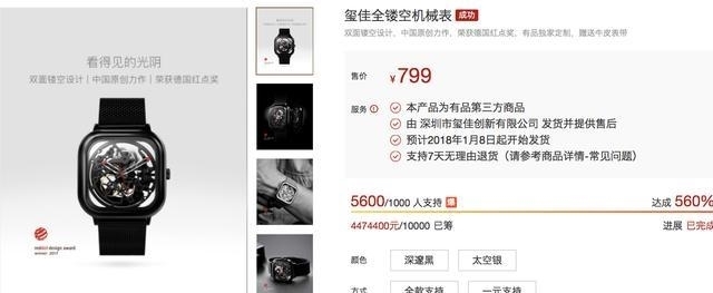 小米众筹自推出以来已经筹集了近200种产品,共有2,686,279名参与者。众筹产品和众筹金额都创下新纪录。获得小米并不容易,获得小米众筹是最优质的产品之一。最近,小米集体筹集了一只名为贾茜全露空的机械表,仅在14天内就集体筹集了450万元。众包达到560%。