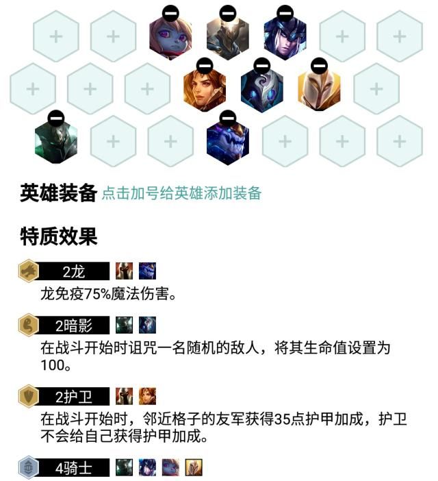 当人口为7时,最好有一个4骑士3元素的阵容。当然,如果你拿不到,猪妹妹会先用我们的老盖伦父亲。