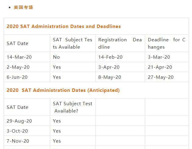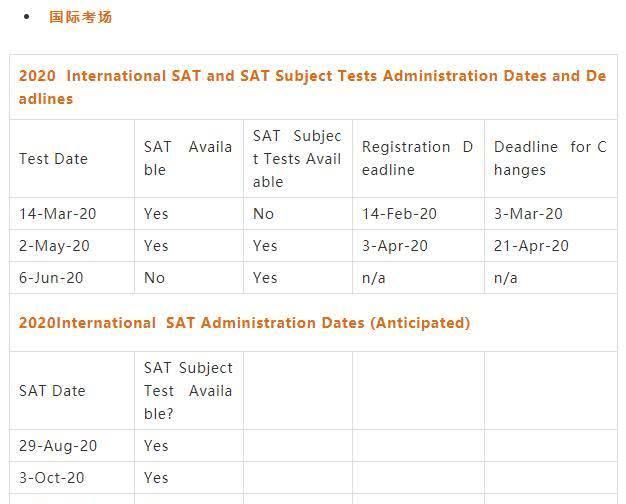 首先,让我们来看看明年国际和美国考场SAT考试安排的细节: