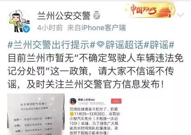 11月25日,“兰州发起交通违法清算行动”的消息在互联网和微信上广为传播,引起网民关注。然而,兰州交警很快驳斥了这一谣言。目前,兰州市尚未实施“不确定机动车驾驶人交通违法行为免罚”措施。