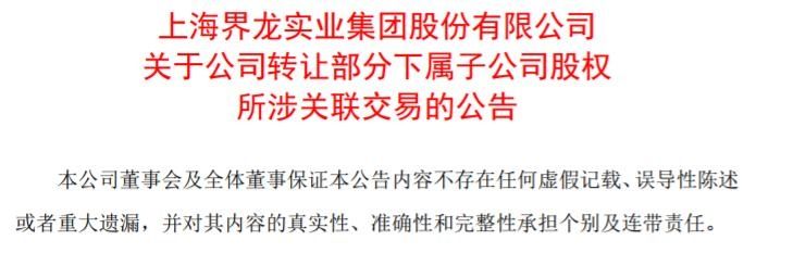 1.以转让价格274,376,600元将上海界龙浦东彩印有限公司的100%股权转让给上海界龙集团有限公司;