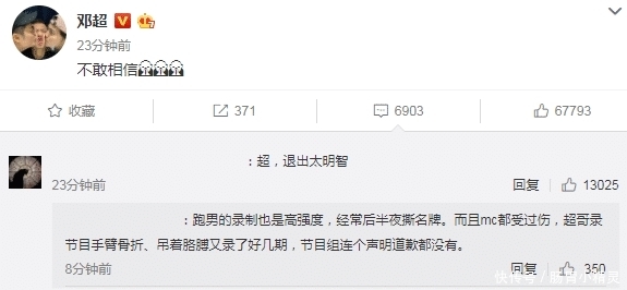 许多网民为此留言。许多网民也认为邓超离开“跑龙套”是明智的。高以翔的去世已经为此类项目付出了惨痛的代价。看来这种节目真的需要改变,否则会有类似的悲剧发生!