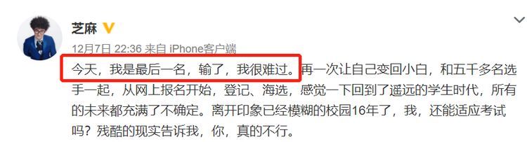 比赛结束后不久,刘洋更新了他输了的消息。仅仅两个半小时后,刘洋更新了一篇超长文章,其中他对比赛的失败感到悲伤。