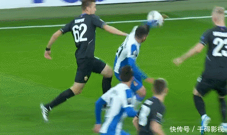 当坎普萨诺在前场左侧与对手的两名球员争夺球时,62号卡尔波夫的左手直接击中了他的脸。