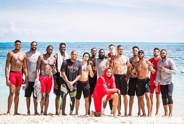 值得一提的是哈登不止一次这样做——当安东尼上赛季来到休斯顿,经过沙滩训练后,我们可以清晰地看到火箭队的照片。哈登也放弃了c位置,把甜瓜留在中间,穿着红色连帽衫!