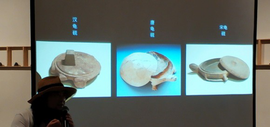 艺术家林岗特地带来了汉唐宋三种砚台在现场展出。在分享会上,他以三个时期的甲鱼砚台为主线,分析了三个不同时期砚台的造型特点。