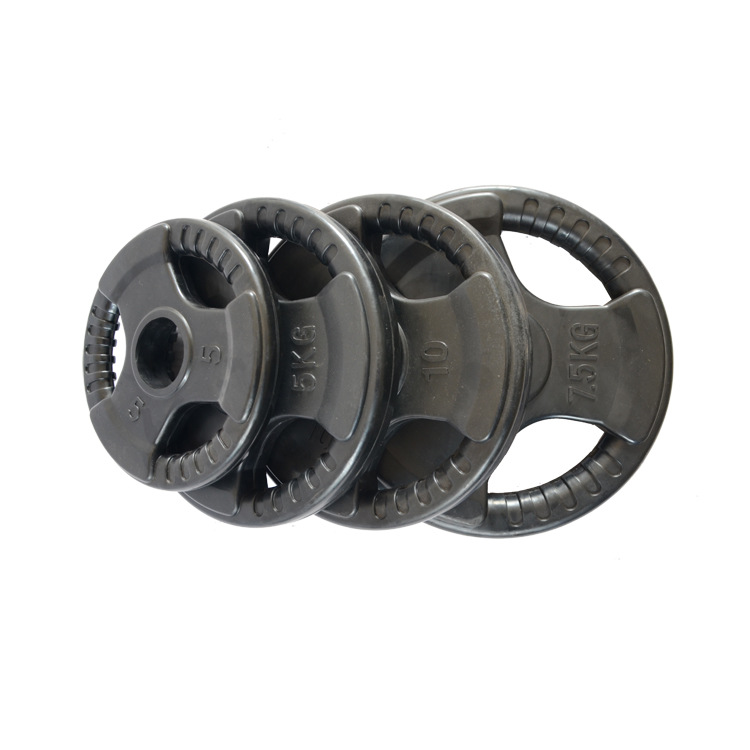 顶级环保无味三孔健身彩色PU杠铃片非包胶手抓奥林匹克大孔杠 河南