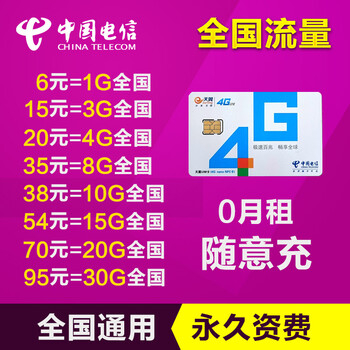 全国无限流量卡电信4G手机卡全国通用流量卡