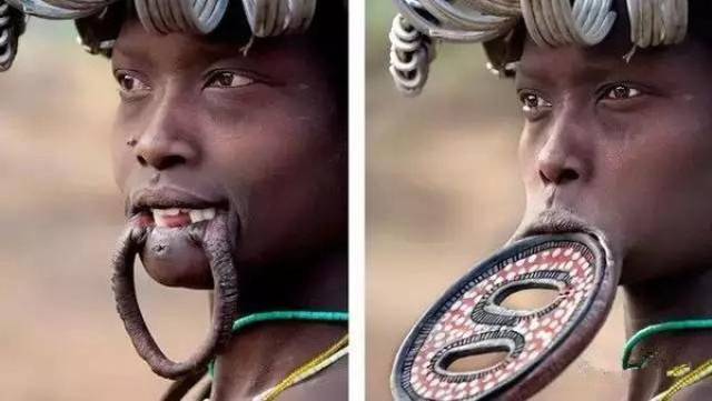 非洲唇盘部上他们为何把嘴唇割了装上唇盘, 难道不疼吗? 太恐怖了