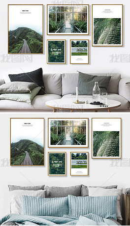 北欧绿色风景装饰画风格照片墙客厅相框墙现代简约组合画宜家画