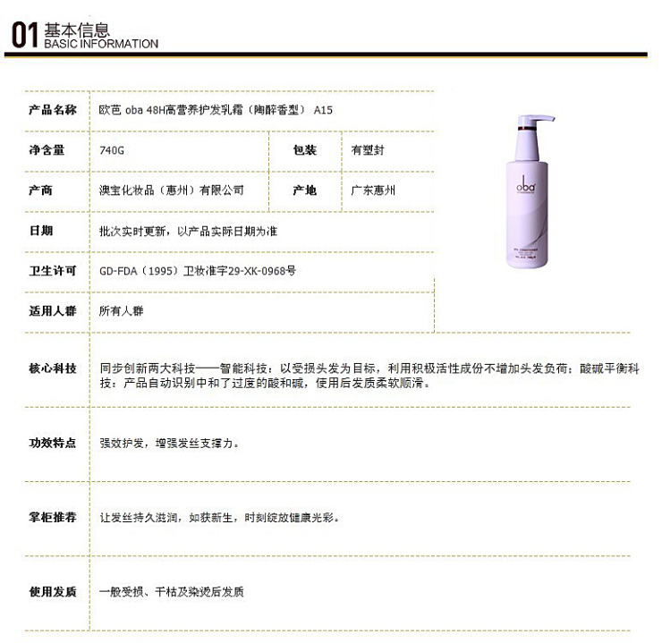 京东商城 欧芭 oba 欧巴高营养陶醉香型洗护套