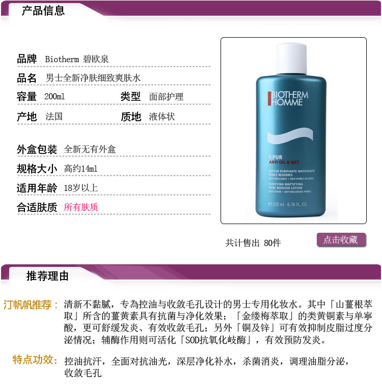 京东商城 Biotherm碧欧泉 男士净肤细致爽肤水