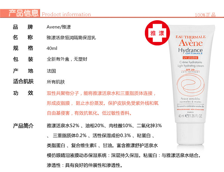 京东商城 Avene雅漾活泉恒润隔离保湿乳40ml