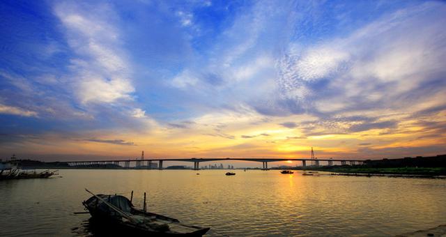 【巴江夕阳下编晚霞摄影图片】巴江河边纪实摄