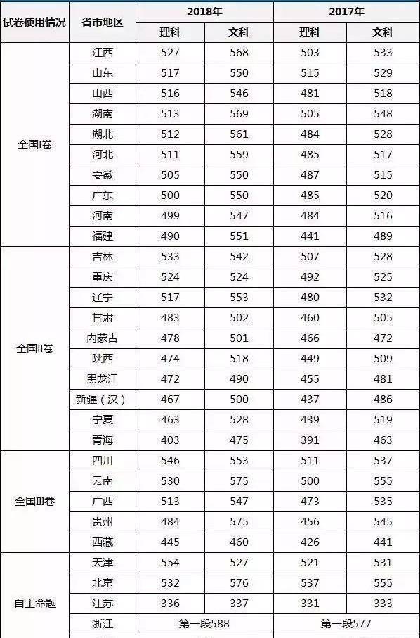 201的8浙江河北四川甘肃省文理科一本线公布