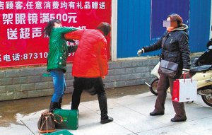 中年妇女燕南路手工皮鞋店偷鞋被抓现行 现场被鞋抽