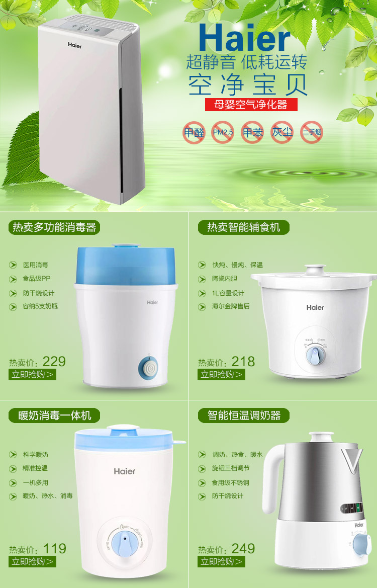 海尔 母婴空气净化器家用高性价比冷触媒去甲