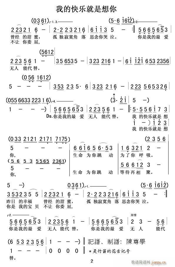 我的快乐就是想你歌词,我的快乐就是想你LRC歌词 歌曲名:我的快乐就是想你歌手:陈雅森所属专辑:《我的快乐就是想你》 作词:牛哥作曲:平凡人/