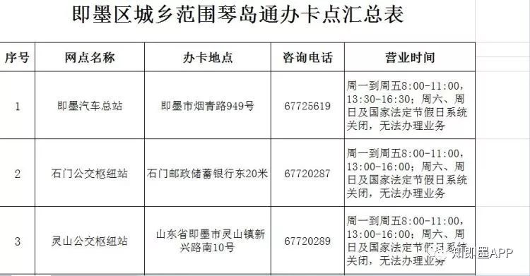 便民:即墨12处乡镇公交换乘站设置琴岛通办卡