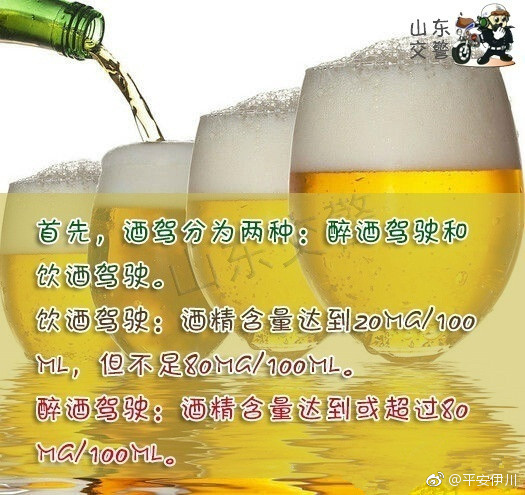 [最佳答案] 每百毫升血液中酒精含量为80毫克相当于3两低度白酒或两瓶啤酒;每百毫升血液中酒精含量为100毫克相当于半斤低度白酒或3瓶啤酒。也就是说,只要喝1杯啤酒就是酒驾;饮啤