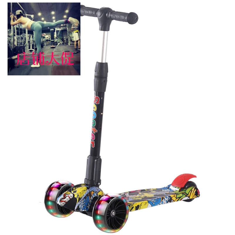 抖音同款小孩单脚滑板车儿童三四轮闪光男孩女